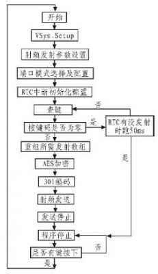 無線電發射系統的軟件設計主要通過C2 接口編程實現Si4010 內部集成的8051MCU 對無線發射電路的狀態進行控制。包括芯片初始化程序,鍵盤掃描及讀取程序,射頻參數設置程序,無線發射程序等。發射系統軟件流程如圖4 所示。