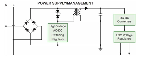 其中,就電源及電源管理模塊(參見圖 1)而言,半導(dǎo)體廠商提供的產(chǎn)品包括高壓交流-直流(AC-DC)開關(guān)穩(wěn)壓器、直流-直流(DC-DC)開關(guān)穩(wěn)壓器/控制器和低壓降(LDO)線性穩(wěn)壓器 等(參見表 1),方便用戶根據(jù)具體應(yīng)用選擇適合的方案。這些電源方案具有高能效、低能耗及豐富保護(hù)特性等特點,非常適合智能電表應(yīng)用。