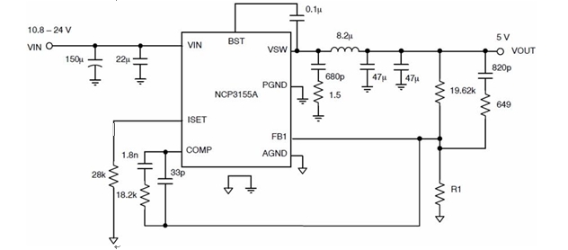 圖 3:NCP3155A 典型應(yīng)用電路圖。