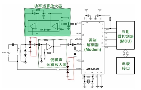 例如,安森美半導(dǎo)體推出了支持 2.4 kb的更高半雙工可調(diào)節(jié)通信速率、符合IEC61334-5-1標(biāo)的AMIS-49587高集成度低功率PLC調(diào)制解調(diào)器方案,以及能驅(qū)動高達(dá) 2 A電流的高能效的A/B類低失真線路驅(qū)動器——NCS5650,能夠很好地配合智能電表PLC調(diào)制解調(diào)器及線路驅(qū)動應(yīng)用。