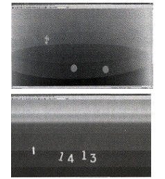 在進行圖像尺寸測量時,需要將經過計量或已知精確尺寸的試件緊貼在被檢焊縫的一側與焊縫同時成像。每次評定前,應作一次標定,缺陷測量時進行對比或通過公式將圖像尺寸轉化為真實尺寸。為此,設計了專用的測量評片用試片(圖3),試片也可用于檢測相對運動速度是否匹配。