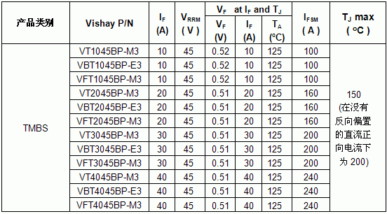 今天發(fā)布的產(chǎn)品包括單芯片V(B,F)T1045BP、V(B,F)T2045BP、V(B,F)T3045BP和V(B,F)T4045BP。每款器件均提供功率TO-220AC、ITO-220AC和TO-263AB封裝。
