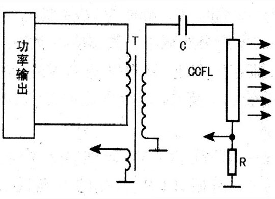 在背光板驅(qū)動電路中,前級(振蕩器和調(diào)制器)和功率輸出部分基本上是工作在開關(guān)狀態(tài)(因開關(guān)狀態(tài)工作效率高,輸出功率大),輸出信號基本也是開關(guān)信號。燈管的最佳供電電壓波形應(yīng)是正弦波,為了保證燈管工作在最佳狀態(tài)(對于發(fā)光亮度及壽命是非常重要的),因此必須把功率輸出級輸出的方波信號變換為正弦波,這一過程簡稱正弦化過程,其具體處理方式有兩種:一是在高壓變壓器高壓輸出端進(jìn)行處理,二是在高壓變壓器低壓輸入端進(jìn)行處理。目前,大多采用后一方式,而前一種方式多用于早期的背光燈驅(qū)動板中,下面分別進(jìn)行介紹。