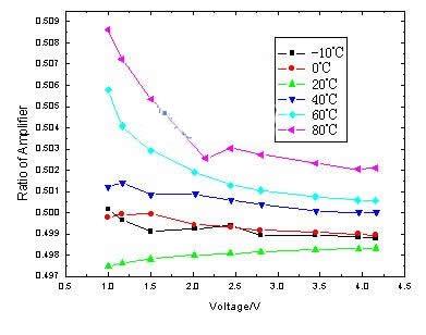 圖4 電壓檢測電路放大倍數不同溫度對照圖