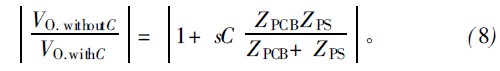 Zsetup和k的值可通過一個(gè)用已知電阻代替ZPS等效電路求得。由此ZPS可由式(4)求出,阻抗變化范圍20~120Ω。把PCB電路板代替ZPS接入圖3中,PCB的輸入阻抗為: