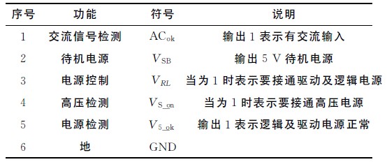控制電源與數字電路CPU 通過6針端子相連,如表2所示。
