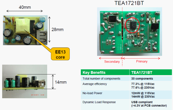 • TEA1716能幫助廠商開發出符合要求的小型電源適配器
