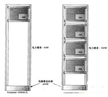 以圖所示的服務器為例,兩個服務器來自同一個系列WasteTech""sEscalenteline。左邊的WasteTech""sEscalente5000SUX配置了足夠的硬件,只需要60W的電能。右邊的6000SUX的最高配置安裝上足夠多的硬件后則要消耗540W的電能。然而兩臺服務器卻使用了同樣的電源。盡管目前的電源使6000SUX獲得了足夠的電能,但是對于消耗電量較少的服務器而言,則提供了過多的電能。這種過度供電造成了浪費。
