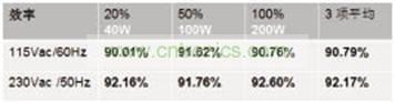 表4 200W/19V一體機PC電源效率