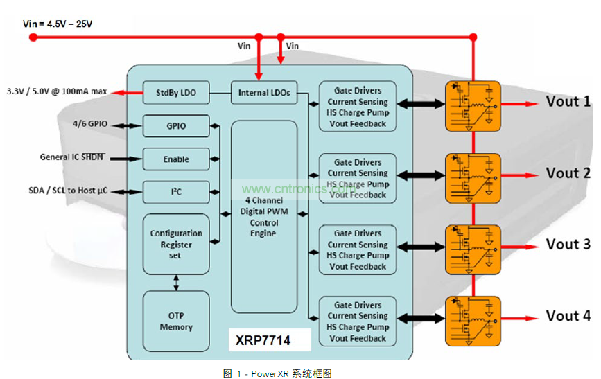過去可以使用模擬電路或 FPGA 完成相移同步時鐘。 很遺憾,這會增加額外的組件、成本和開發工作。令人欣慰的是,當今市場上有多個數字 PWM 控制器集成了同步和相移。在本文中,Exar 的 PowerXR 技術展現了相移的優點,如圖 1 所示。