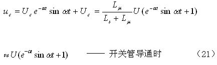 我們從(21)式以及圖3和圖4可以看出:當電源開關(guān)管Q1導(dǎo)通時,分布電容Cs兩端電壓(也是勵磁電感l(wèi)v兩端的電壓),由一個最大振幅約等于輸入電壓U的正弦振蕩電壓與一個分布電容Cs兩端電壓的半波平均值