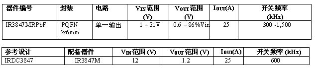 【導讀】IR近日宣布推出IR3847大電流負載點 (POL) 穩(wěn)壓器,該產品可將采用纖巧的5x6 mm封裝的IR第三代SupIRBuck系列的額定電流擴大至25A。