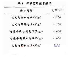 圖5摘取了保護板1中前三級(1~3級)保護電路,6~10級保護電路與此相似。所選取的芯片技術(shù)指標(biāo)如表1所示,對于過充電、電平衡和過放電功能都有其檢測和解除電壓,以確保各狀態(tài)的可靠進入和退出。