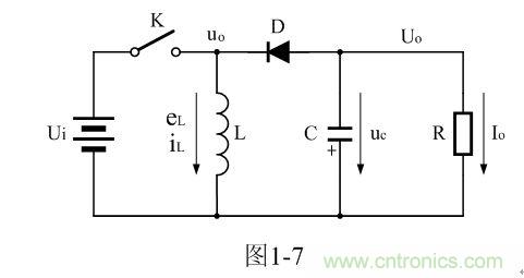 上式中Uo前的負號,表示K關斷期間電感產生電動勢的方向與K接通期間電感產生電動勢的方向正好相反。
