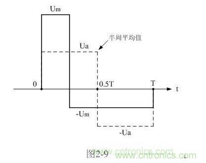 順便說明,這里的半周平均值,并不是一般意義上的正、負半周波形完全對稱交流電壓正半周、或負半周的平均值,這里的半周平均值是泛指整個周期中的正半波電壓或負半波電壓在半個周時間內的平均值。如圖2-9所示。另外,(2-19)、(2-20)式中的半周平均值Ua和Ua-與第一章中(1-70)、(1-71)式定義的半波平均值Upa和Upa-也稍有一點差別,Ua和Ua-與Upa和Upa-的差別,主要是在分母上。