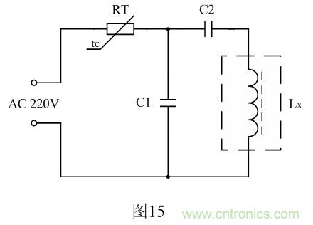 圖15中RT為熱敏電阻,Lx為小功率開關(guān)變壓器初級線圈,C1為分流電容,C2為限流電容。電容C1和C2的大小,需根據(jù)小功率開關(guān)變壓器初級線圈勵磁電流的大小來決定。一般消磁電流需要達(dá)到極限電流Imax的3~5倍。