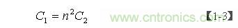設(shè)次級(jí)線圈的分布電容為C2,等效到初級(jí)線圈后的分布電容為C1,則有下面關(guān)系式: