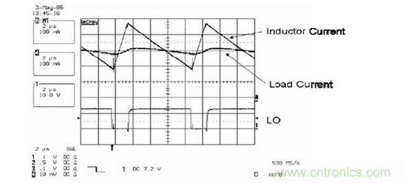下圖說明了電感減小時,在輸出電壓的變化范圍內(nèi),負(fù)載電流的波動明顯增大。