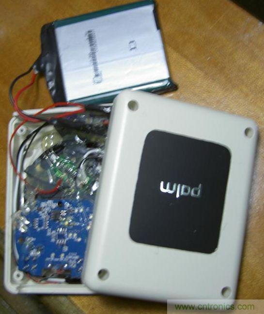 由于點金石表面是有一定凹陷下去的,非常契合palm的后蓋,而這個凹陷實在難以加工。另外,點金石里那圈非常細(xì)的線圈也是用膠水粘在外殼上的,比較難取下來。而且點金石上那個“plam”的金屬字也比較酷,因此于是我決定將點金石嵌入到移動電源中。