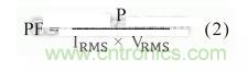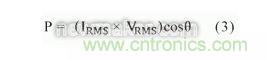 PF還等于線路電流與電壓之間的相角(θ)的余弦值;從這個(gè)角度來講,式2可以重新寫成以下形式: