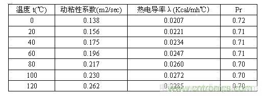 λ:熱電導率(kcal/m2h)空氣物理性質