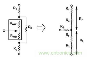 使用串并聯組合對電位計進行線性化可能十分復雜,如圖10中的等效電路所示。