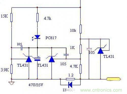 缺點:由于TL431是2.5V基準(zhǔn),故恒流取樣電路的損耗極大,不適合做輸出電流過大的電源。而此電路的致命缺陷是不能空載,故不適合做外置式的LED電源,所以下面我們對線路的一些缺陷進行了改進。