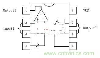 次級(jí)采用恒流恒壓雙環(huán)控制。NCS1002是一款恒流恒壓次級(jí)端控制器。如圖2所示,它的內(nèi)部集成了一個(gè)2.5V的基準(zhǔn)和兩個(gè)高精度的運(yùn)放。