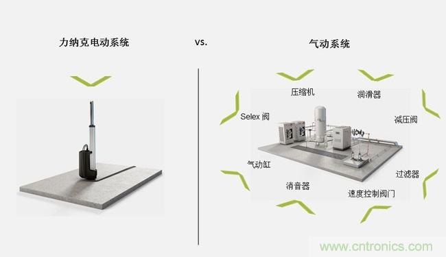 * 力納克電動系統與氣動系統相比,優勢明顯