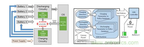 傳統的BMS肯定是拒絕的,但是如果是SDB(software defined battery)就不一定了。傳統的BMS一根充電線進來,給所有的電池充電/記錄/截至,然后再輸出。如果電芯一致性較差,上邊所描述的那些問題就會一一發生。再進一步,如果我們腦洞再開大一點,我在我的電池包里安裝上兩種電池,一種用于應對低速巡航時的低倍率放電工況,另一種用于應對高速急停時的高倍率放電工況。不同的電芯體系具有不同的特點,??紤]的能量密度/功率密度/成本/壽命/柔性等指標也是相互沖突,如果需要在同一模組中使用不同體系電芯,搭配出一個綜合性能突出的產品,傳統的BMS就比較困難了。微軟覺得,這個可以這樣做:給每一個電池都加上一個充電放電管理微裝置(smart switching circuitry),收集每個電池的充放電電壓/電流/電阻,實現智能分流調配,使每個電芯的充放電情況接近于單體電芯,最大化電芯的使用價值。這種電芯管理模式的主要難點在于收集到這些數據之后的分析與電流調配,微軟為之開發了一個比較復雜的算法,并將使用這種電池管理模式的電池包為Software defined battery。
