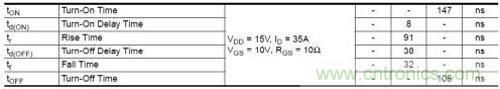 以FAIRCHILD公司的MOS為例,如表1所示:FDD8880開關時間特性表。