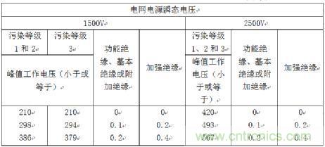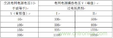 1、根據交流電網電壓有效值和過電壓類別確認交流電網電源瞬態電壓(由附錄Z和表2J確定);