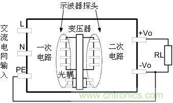 假如開關電源輸入有L、N和PE則測試圖如下圖1所示: