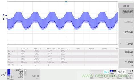 實測100~240VAC輸入開關電源初次級最大電壓波形如下圖3所示,工作電壓峰值為500V,工作電壓有效值為265V,根據表2J可知交流電網電源瞬態電壓為2500V。