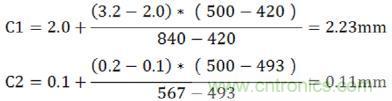 即最小電氣間隙的基本絕緣為C1+C2=2.34mm(由于峰值電壓500V大于輸入電壓峰值),加強絕緣為4.68mm;