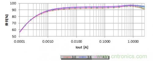 圖4所示為不同輸入電壓的效率曲線。在VOUT = 5V和VIN = 3.6V時(shí),TPS61230A具有3A的出色輸出容量;效率可高達(dá)94%。