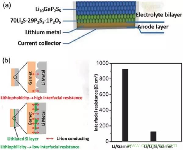 圖15.通過涂覆不同的穩(wěn)定材料,改善固體無機(jī)電解質(zhì)和鋰箔之間的固-固界面