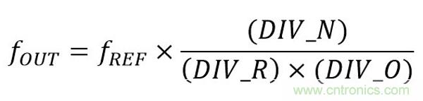 圖 1 為高性能時鐘設備的基本 PLL 架構。該設計使用比例因子為 PLL 輸出端口提供時鐘合成。最終輸出頻率的基本公式為: