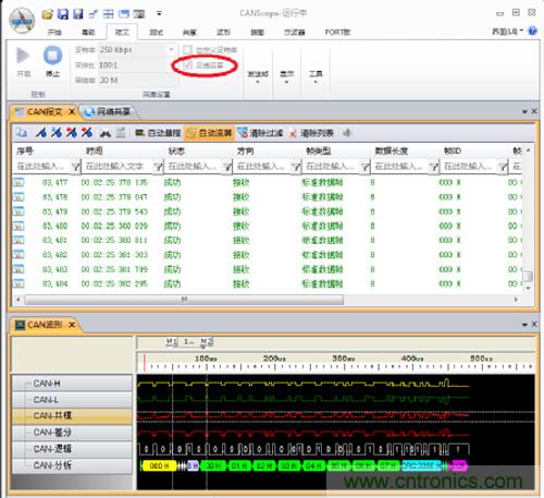 我們勾選上總線應答,再次開始實驗(此時總線中相當于有3個節(jié)點)。這時如圖8所示,總線數據收發(fā)正常。