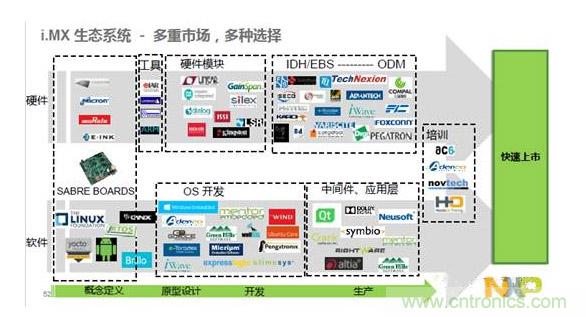 除了S32V系列,被收購的飛思卡爾有一款著名的i.MX系列芯片也可以作為中央處理器。i.MX特別是i.MX6在汽車上,特別是車載信息系統上有大量的應用。眾多的汽車廠商使用i.MX。