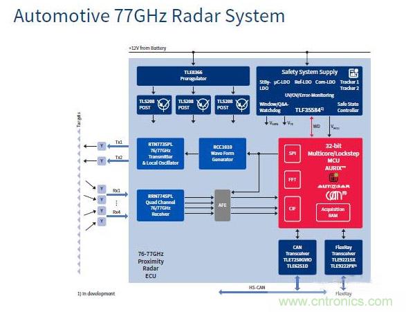 作為汽車電子、功率半導體以及智能卡芯片的全球市場領袖,英飛凌一直以來為汽車等工業應用提供半導體和系統解決方案。英飛凌在24/77/79G雷達、激光雷達等傳感器器件及處理芯片方面都具有領先的技術。除此之外,在車身控制、安全氣囊、EPS、TPMS等等各方面都有自己的解決方案。