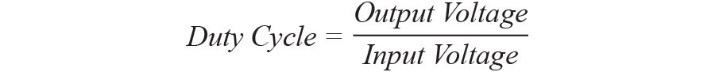 如果在這種單一轉換步驟中使用降壓轉換器(buck),如圖1所示,就會出現工作周期偏低的問題。工作周期(duty cycle)是指運行時間(主開關開啟)與關閉時間(主開關關閉)之間的比值。降壓轉換的工作周期是透過以下的公式計算而出: