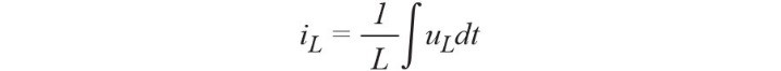 在這個例子中,可觀察到在啟動狀態時有大約44伏特的電經過電感,48伏特在開關節點一側,3.3伏特在輸出側。電感的電流可用以下公式算出: