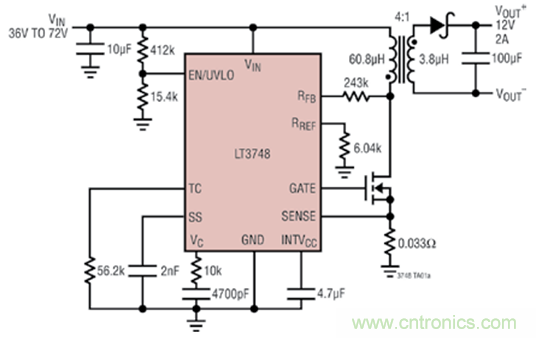 在隔離型 DC/DC 應用中廣泛使用反激式轉換器已有多年,然而,它們卻未必是設計人員的首選。電源設計師選用反激式轉換器并不是因為它們可降低設計難度,而是迫于較低功率隔離要求的壓力,實乃不情愿之舉。由于控制環路中眾所周知的右半平面零點的原因,反激式轉換器存在穩定性問題,而且光耦合器的傳播延遲、老化和增益變化還會使該問題進一步復雜化。此外,反激式轉換器還需要專門花費大量的時間進行變壓器的設計,而由于可供選擇的市售變壓器品種有限且有可能需要定制變壓器,所以導致此項設計工作變得愈發復雜。不過,凌力爾特公司近期發布的 LT3748 隔離型反激式控制器解決了此類反激式轉換器設計的諸多難題。