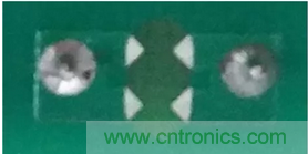 另一種辦法是在PCB設(shè)計(jì)時(shí),在共模電感兩端加入放電齒,使得電感通過(guò)兩放電尖端放電,避免通過(guò)其他路徑放電,從而使得對(duì)周圍和后級(jí)器件的影響減到最小。如圖3是ZLG致遠(yuǎn)電子型號(hào)為PA1HBxOD-10W的電力電源模塊PCB在共模電感處加入的放電齒的實(shí)物圖。