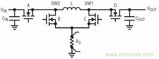 圖1:四管同步BuckBoost升降壓變換器拓樸結構