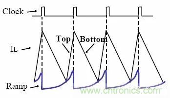當輸入電壓比輸出電壓低△V時,開關管A保持常開,開關管B保持常關,開關管C和D工作于同步Boost模式。其工作原理與一般的同步Boost工作原理完全相同,控制的方法為峰值電流模式,如圖5所示。