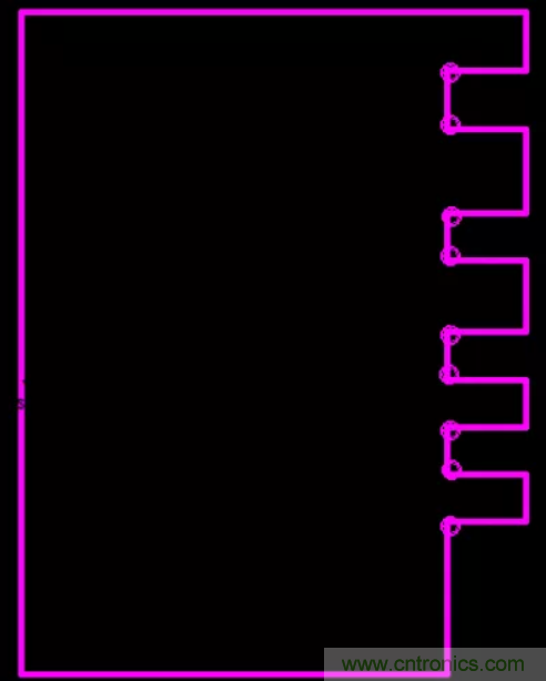 16.畫小板時,在小板引腳的90度拐角處增加一個圓形鉆孔。
