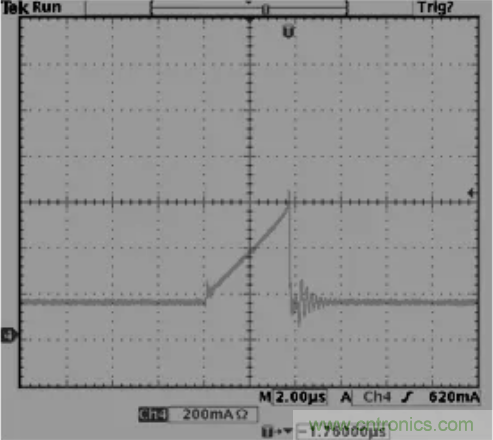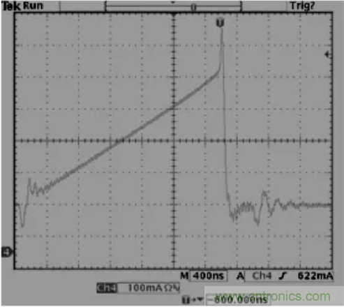 32.反激拓補結構,變壓器B值需小于3500高斯,如果變壓器飽和一切動作將會失控,如下,上圖為正常,下圖為飽和。