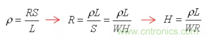 依據電阻率公式得出以下公式: